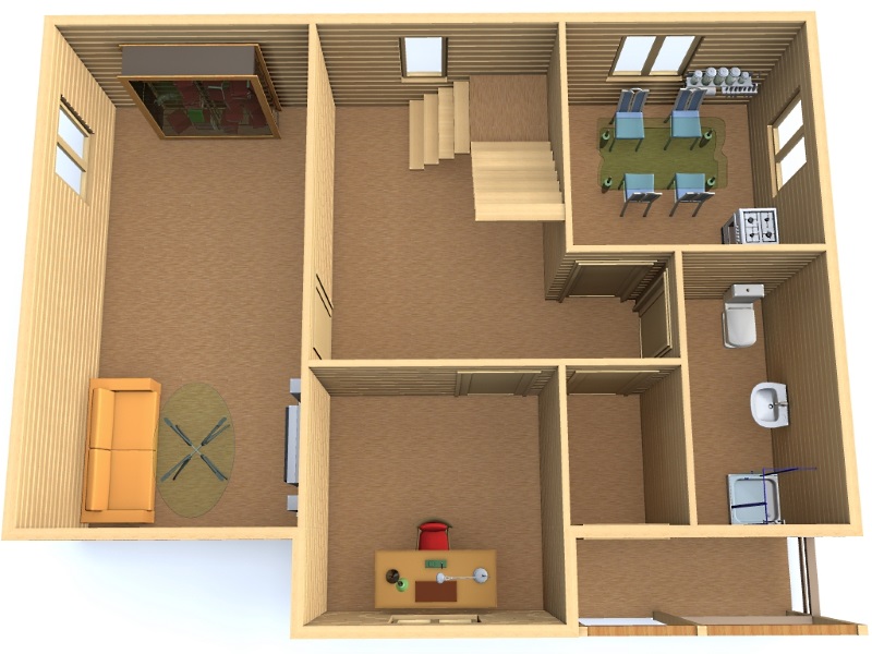 | Перегородки 1-го этажа | Толщина бруса внутренних перегородок — т.95мм. (брус профилированный строганный 95х140мм), устанавливается на металлические нагели с прокладкой межвенцового уплотнителя. |