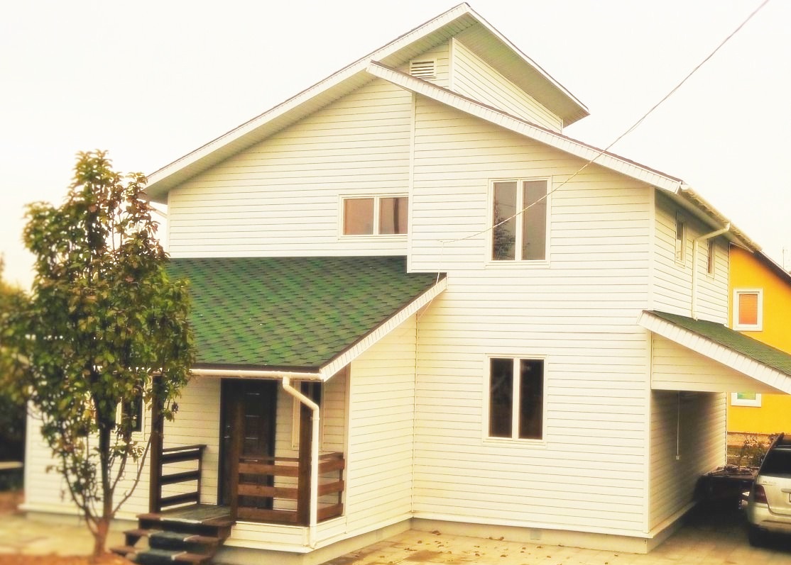 Строили красивый двухэтажный коттедж каркасник в Кингисеппе. Общ.площадь дома 154 м2 Участок 14 соток. Все коммуникации в доме подключили сантехники за одну неделю, под ключ.